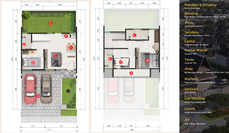 * Luas Bangunan / Tanah: 82 m² / 87 m² (7 x 12,5 m)